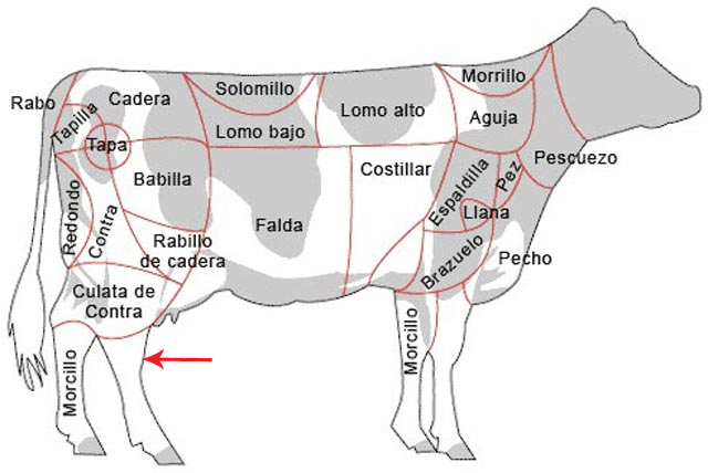 Estofado de carne de vacuno, cortada del jarrete, con el hueso y su caña incluidos.